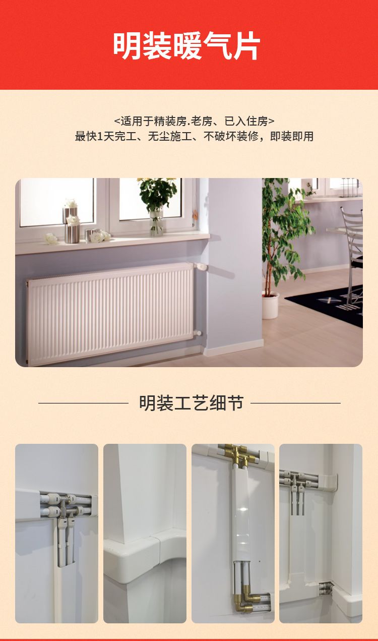 菲斯曼明暗装暖气片家用水暖散热片采暖燃气水地暖全套设备