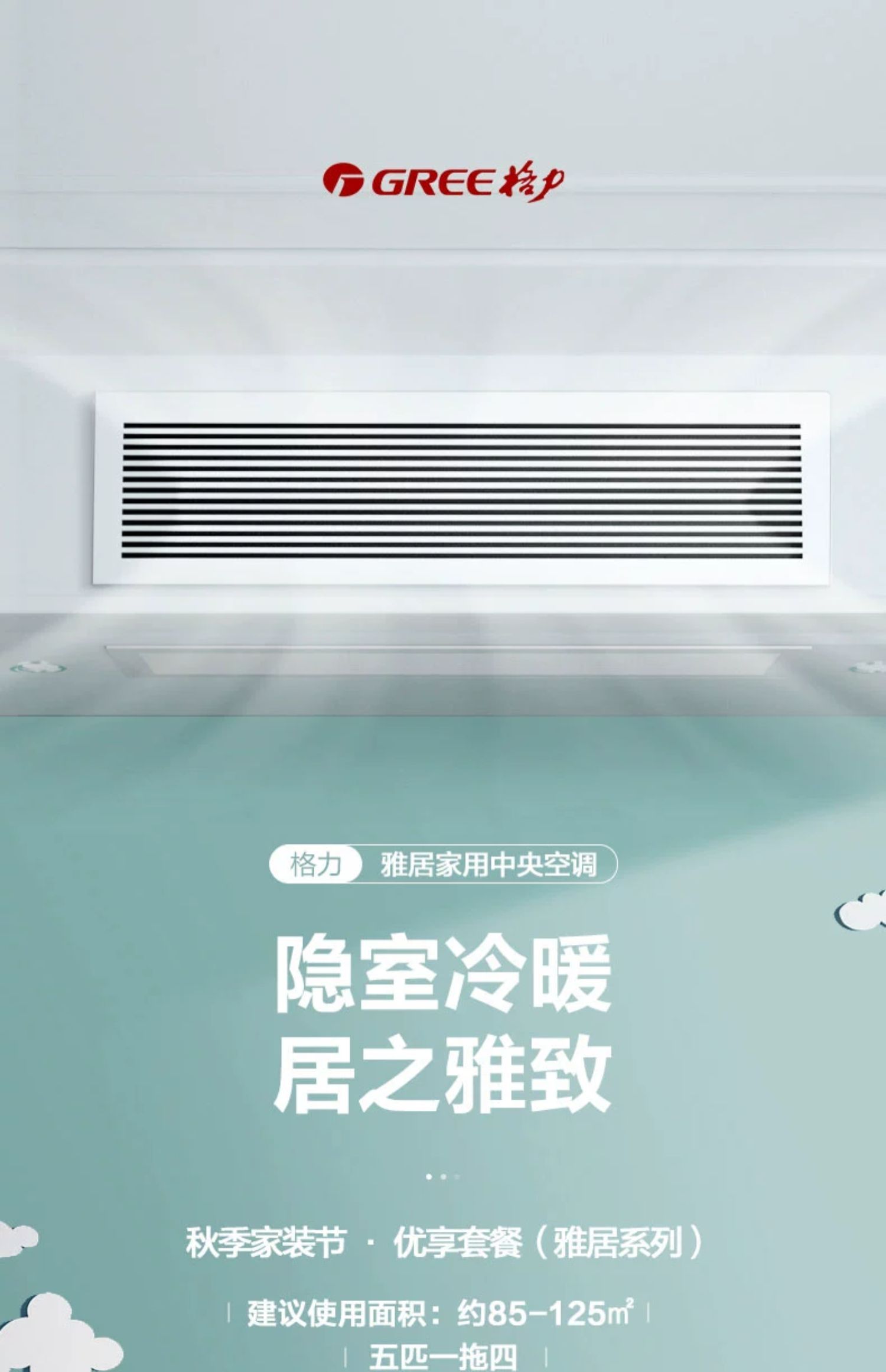 Gree/格力家用中央空调三室一厅多联机大5匹一拖四冷暖变频雅居