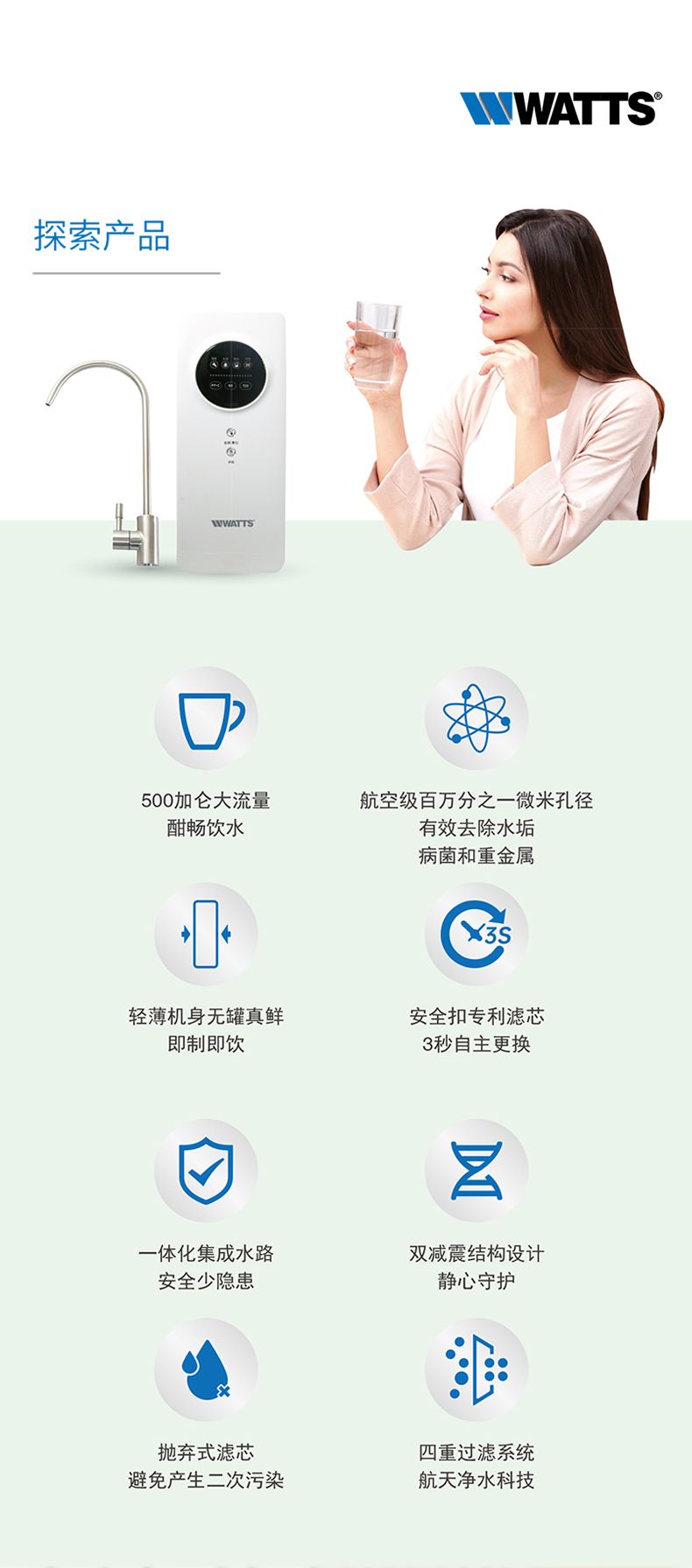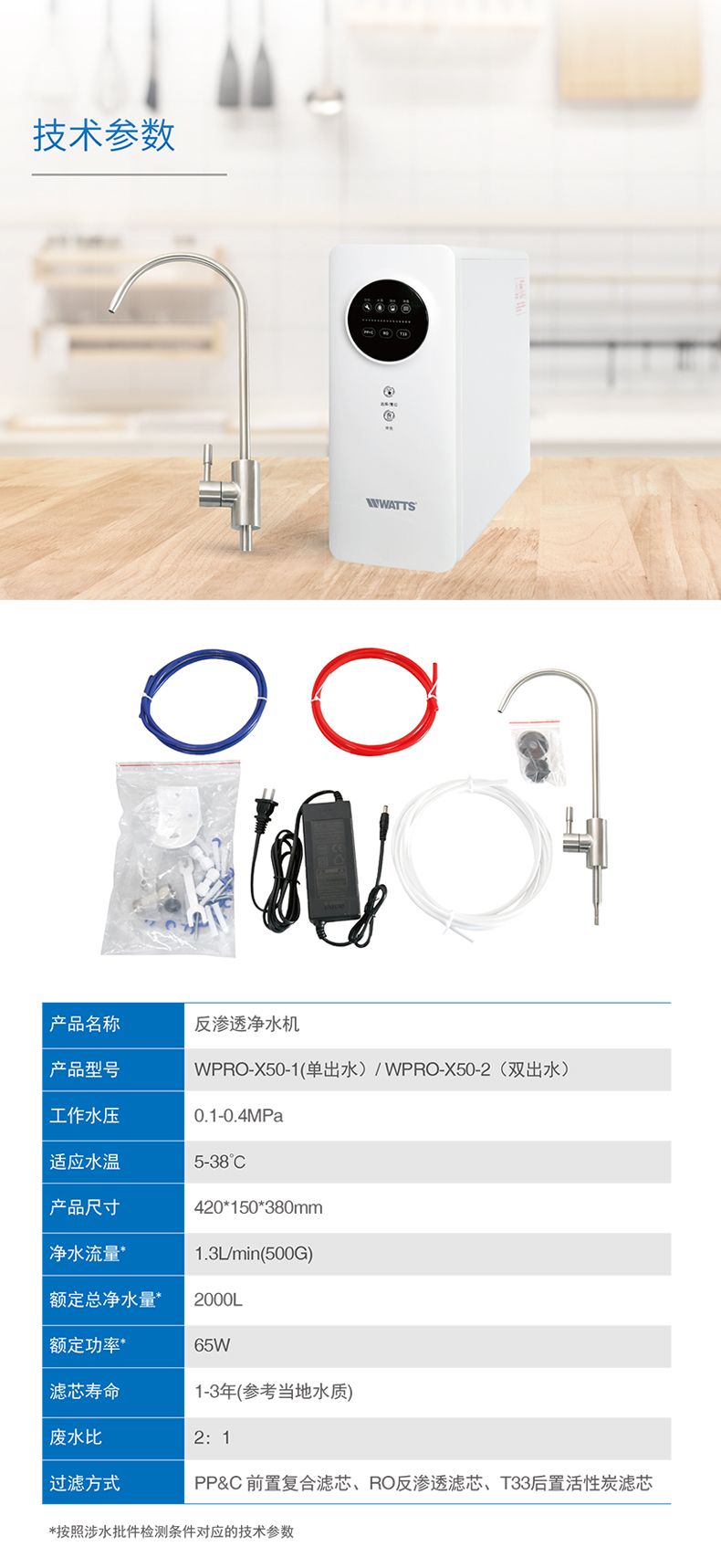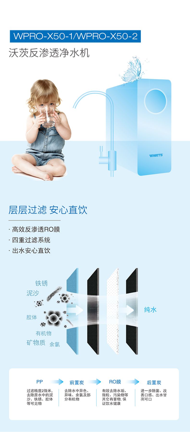 美国沃茨净水器家用厨房自来水净水机RO反渗透全屋净水器WPRO X50