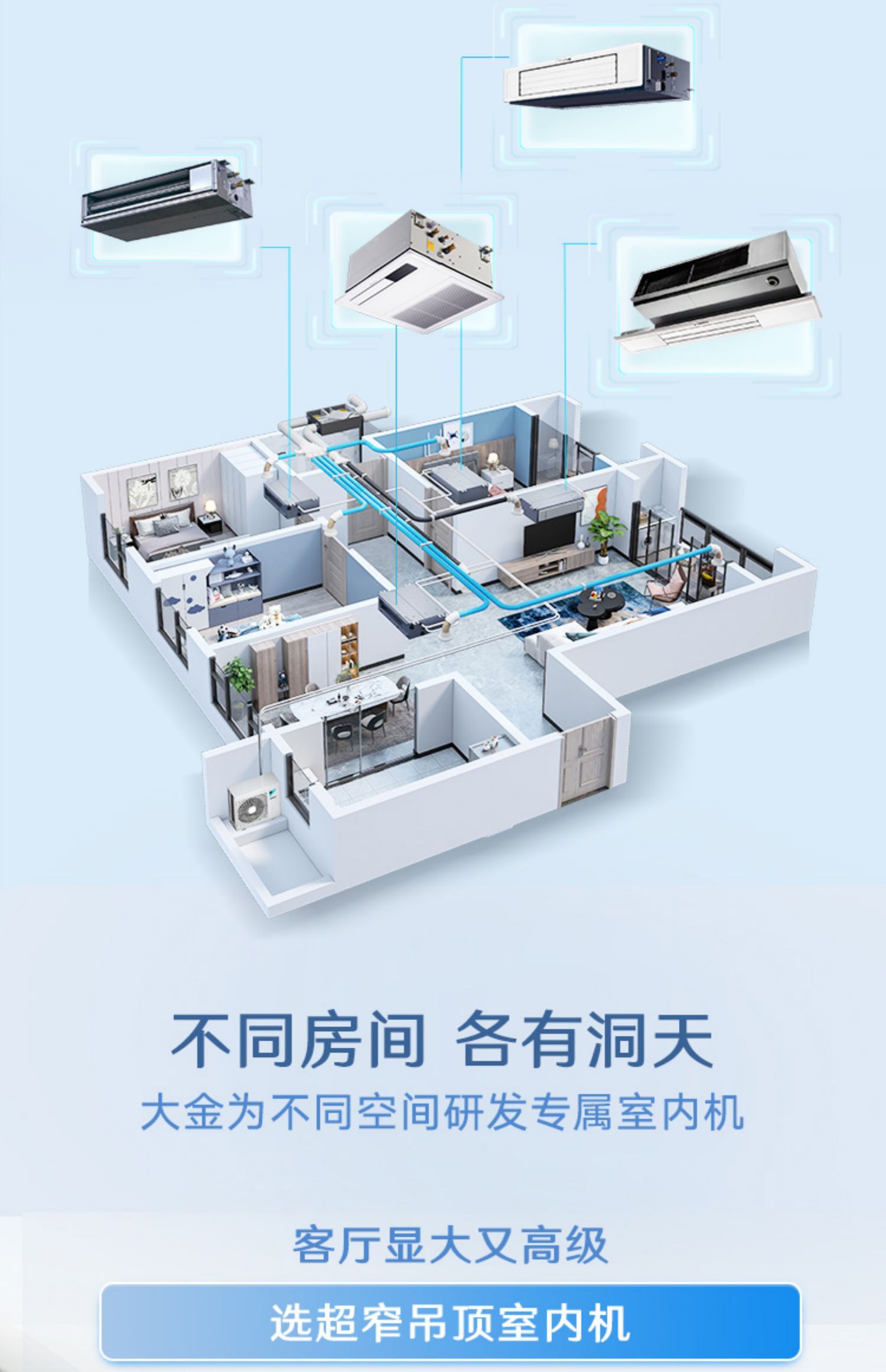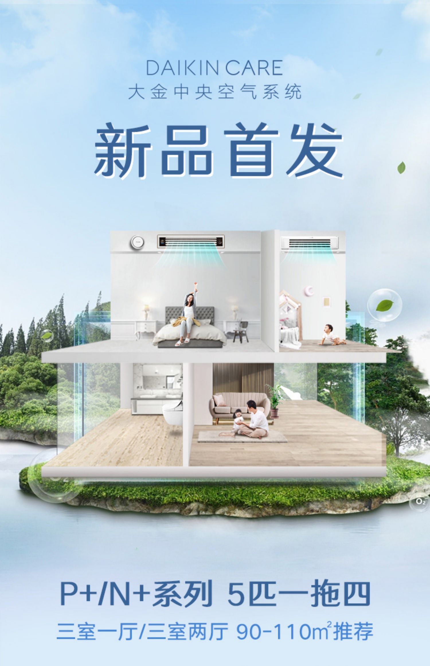 大金中央空调5匹一拖四家用变频多联机空调舒适款P+/N+系列
