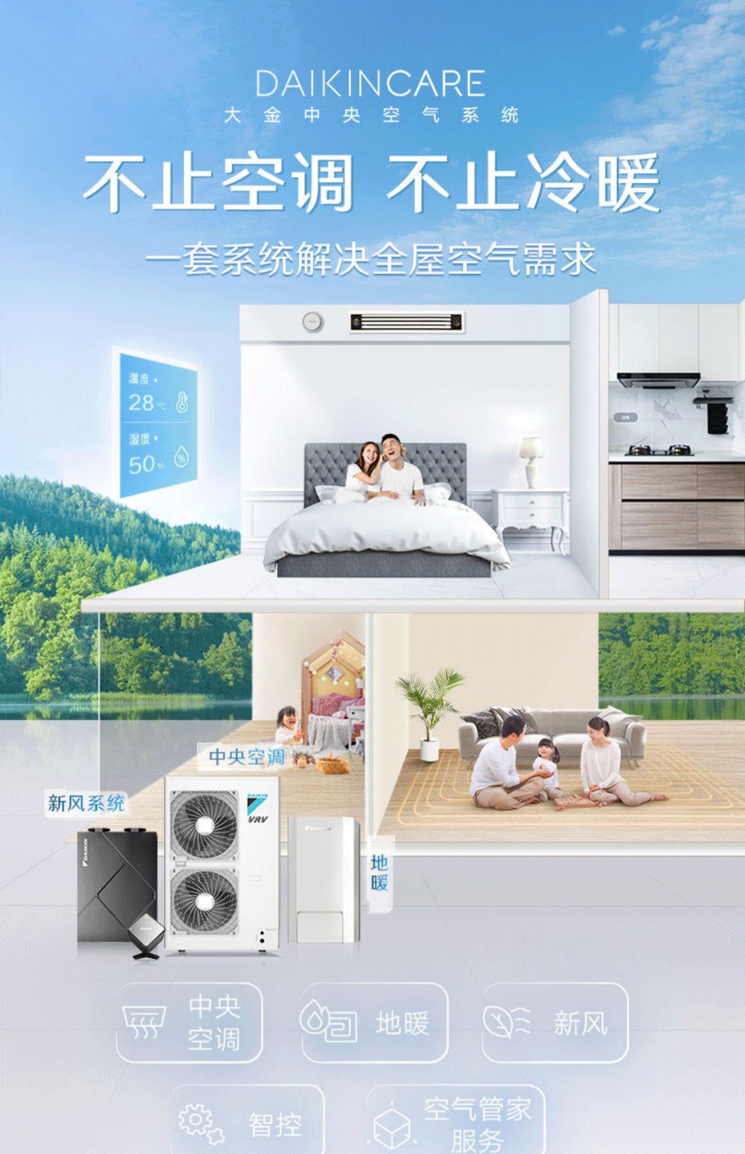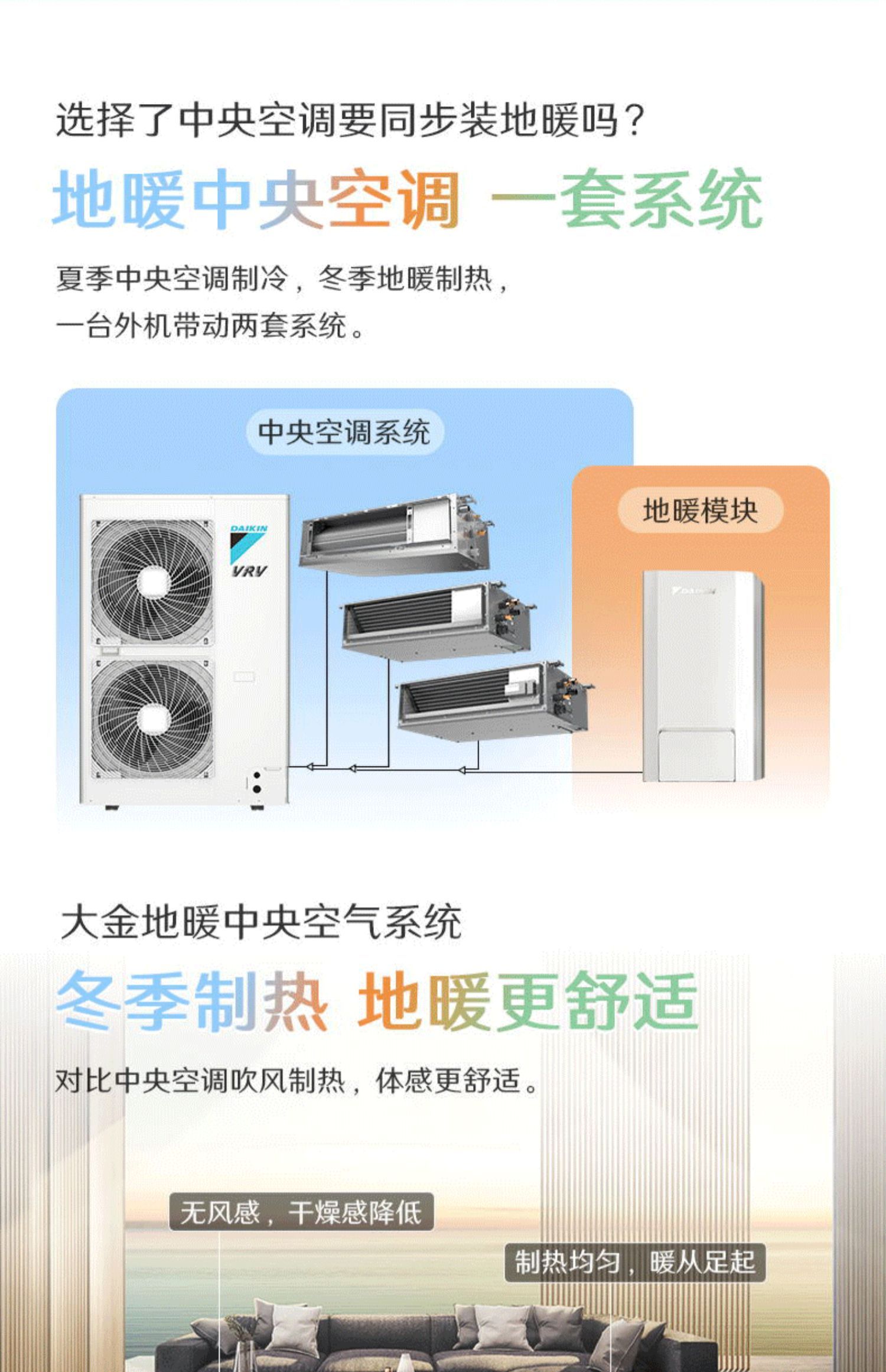 大金地暖中央空调 家用中央空调新风套装 空气源热泵地暖空调组合