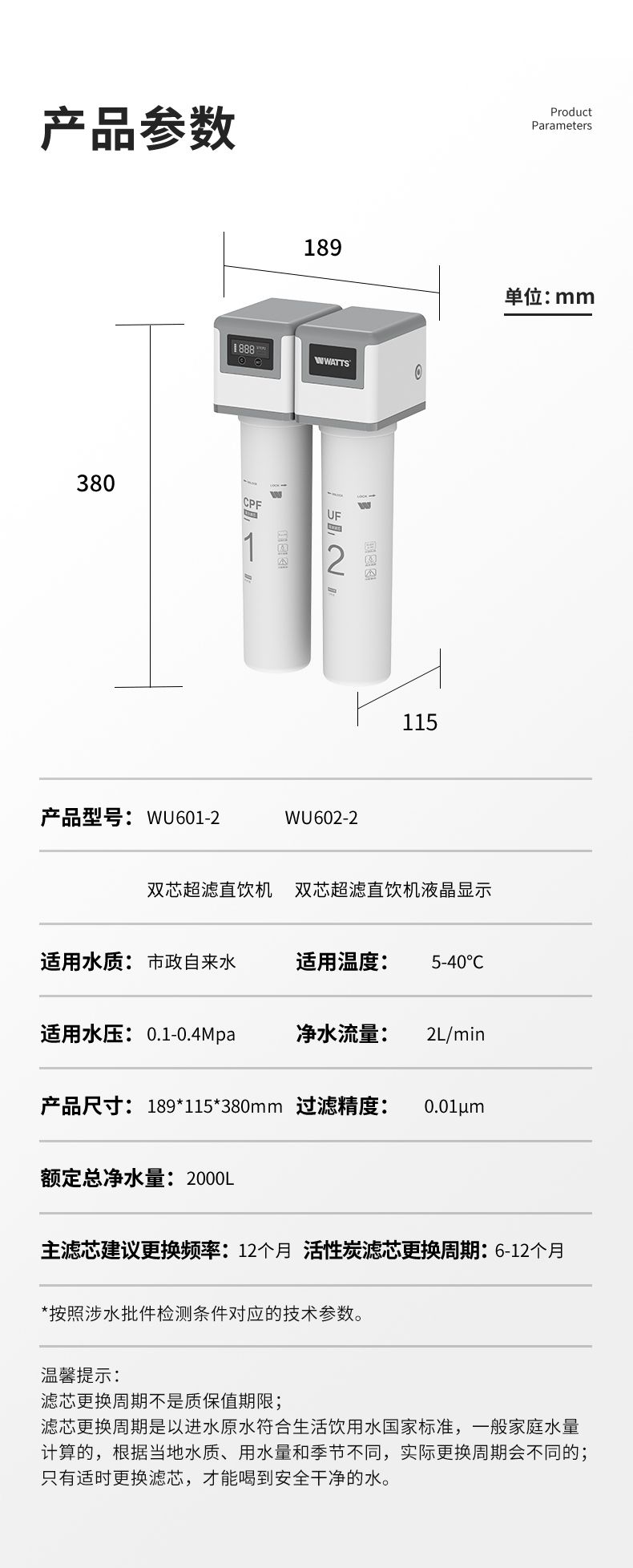 美国沃茨净水器家用母婴直饮过滤器自来水厨房家用大流量超滤机